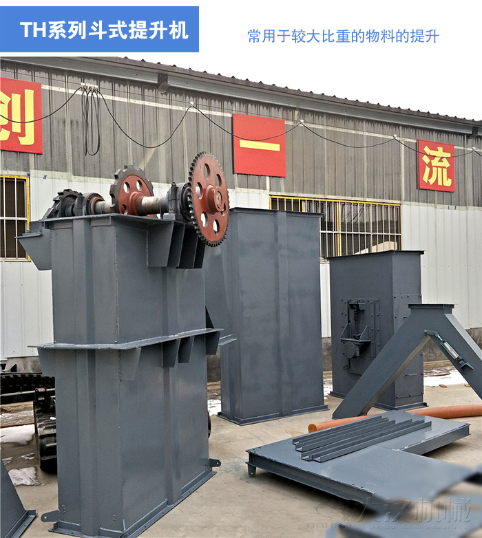 TH系列斗式提升機是一種常用的提升設備,該系列斗式提升機采用鍛造環鏈作為傳動部分,具有很強的機械強度,主要用于提升機粉體和小顆粒及小塊狀物料,區別于TD系列斗式提升機,其提升量更大、運轉效率更高。其常用于較大比重的物料的提升。