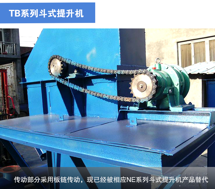 TB系列斗式提升機是一種較老型號的斗式提升機,其傳動部分采用板鏈傳動,現已經被相應NE系列斗式提升機產品替代 。