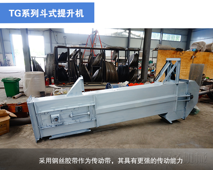 TG系列斗式提升機是一種加強型膠帶斗式提升機,其區別于TD系列斗式提升機,TG系列斗式提升機采用鋼絲膠帶作為傳動帶,其具有更強的傳動能力。該系列斗式提升機多被應用于糧食輸送上,又被長稱呼為糧食專用斗式提升機。