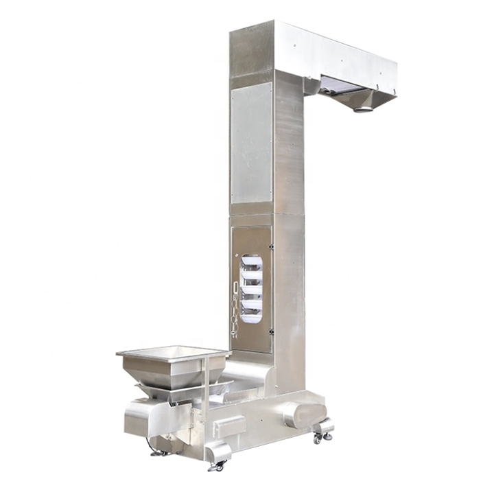 鏈條式Z型輸送機通常配備板鏈或附件鏈條,較高的承載能力和抗沖擊性能。輸送高度范圍可達(dá)2-15米以上,常用鏈條寬度為300–600mm,載重能力可達(dá)2t/h以上,適用于生產(chǎn)線負(fù)荷大、袋體較重或大容量液體袋的液體包裝場景。