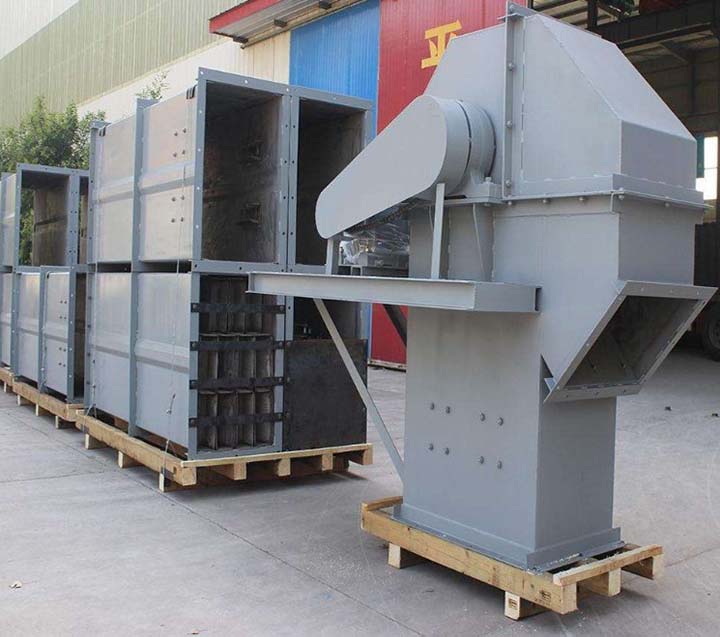 產品簡介:HL型環鏈離心斗式提升機適用于垂直輸送磨琢性較大的粉狀、粒狀、及小塊狀物料,如糧食、煤、水泥、碎礦石等,輸送高度高40m,其特點為,結構簡單,運行平穩,掏取式裝料,混合式或重力卸料,輪緣采用組合鏈輪,更換方便,鏈輪輪緣經特殊處理壽命長,下部如采用重力自動張緊裝置,能保持恒定的張力,避免打滑或脫鏈,同時在料斗遇阻時,有一定的容讓性能夠有效地保護